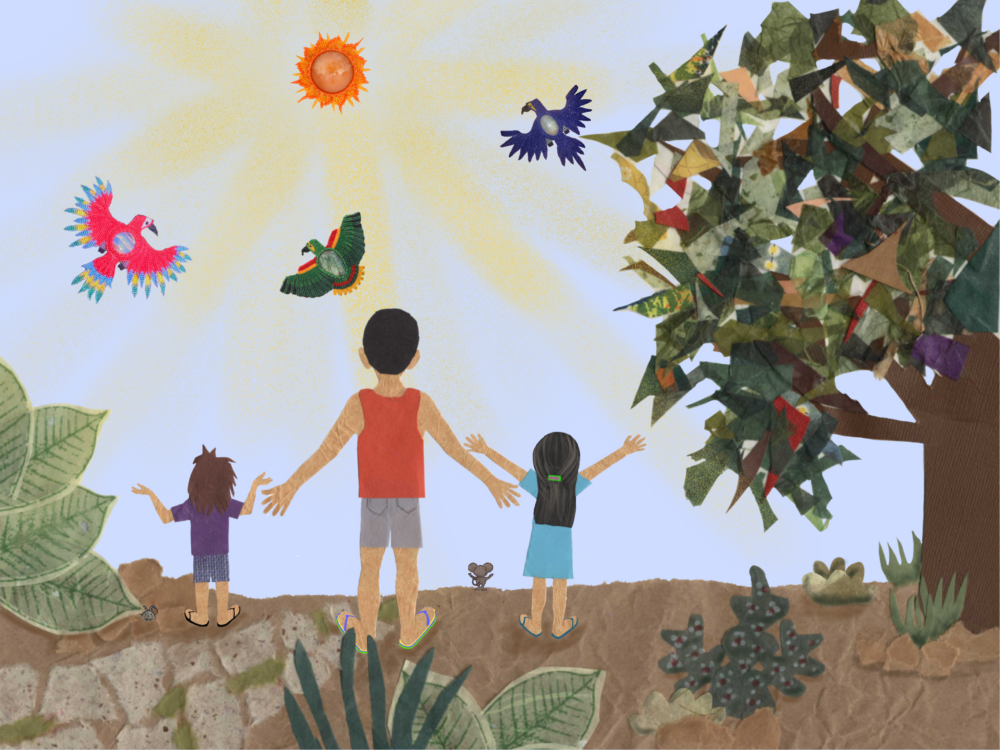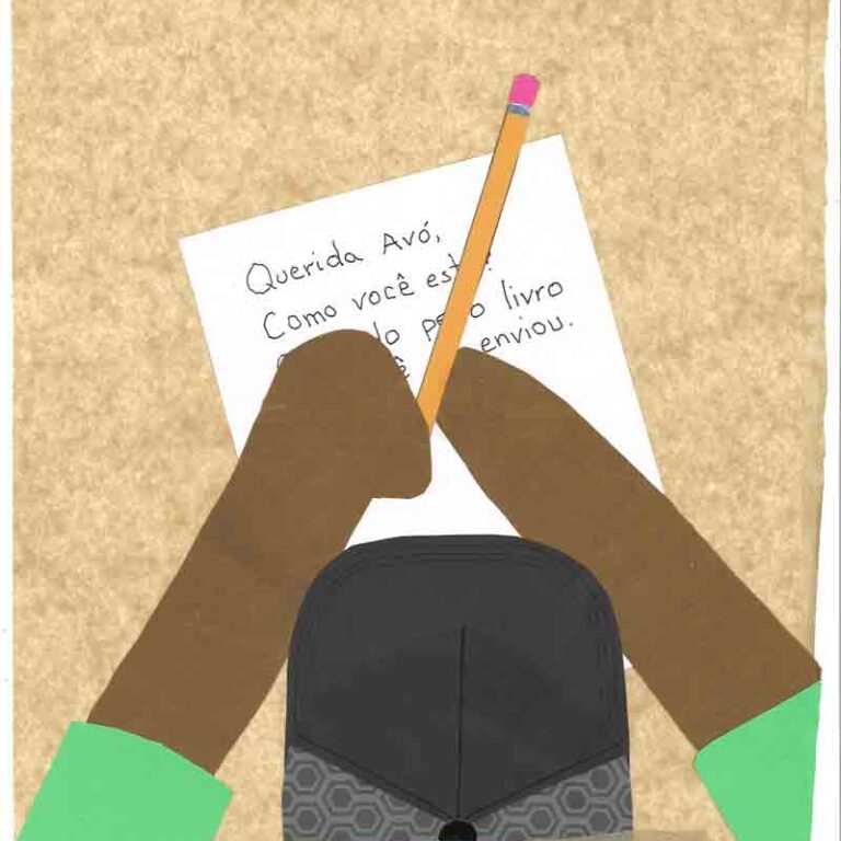 “Elena Stowell, author and illustrator, uses a distinctive artistic collage style, which is both playful and engaging for readers of all ages. To illustrate her latest children’s book, Frango & Chicken, Elena cobbles together the simple ingredients of childhood magic; colored paper, paste, and scissors! Elena has captured the heart and soul of Brazil in this charming tale, using effective writing and authentic characters served up as a visual feast for the reader. Elena’s enchanting story is based on a real life hero, Frango and his sidekick chicken. Her captivating illustrations are reminiscent of author/ illustrator Eric Carle’s whimsical children’s books. Artist Pablo Picasso once said, ‘It has taken me a lifetime to learn to paint as a child.’ Elena’s work clearly captures the spontaneity of childhood expression with the technical mastery of her craft. ~~ Leslie Cronkhite Armstrong, children’s book illustrator